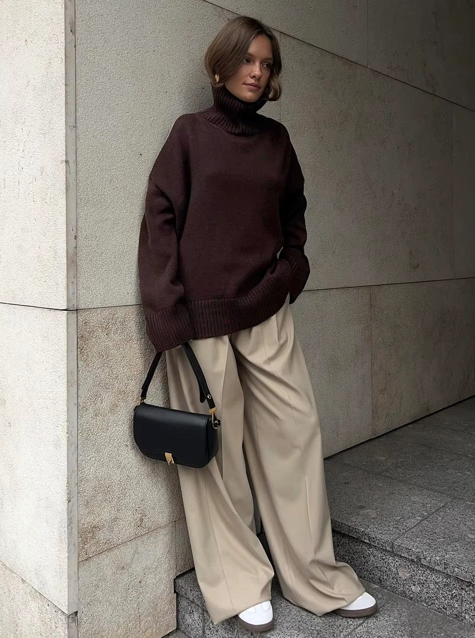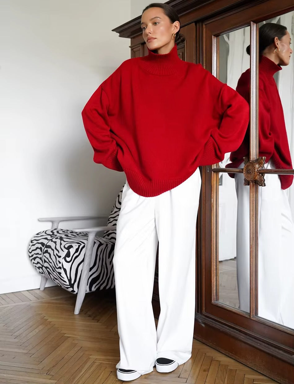Stickad tröja med långa ärmar och polotröja i överdimensionerad modell för kvinnor