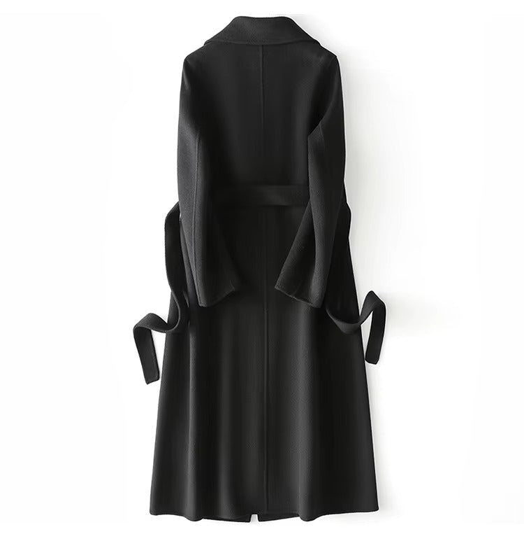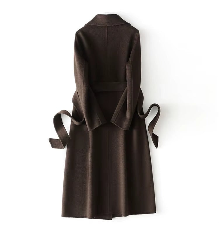 Lång vinterkappa med bälte för kvinnor